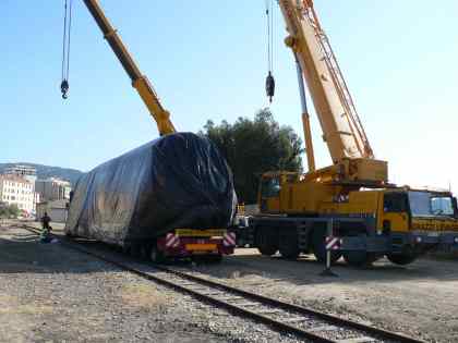 The dramatic arrival by ferry, lorry and crane of one of the new AMG800s.